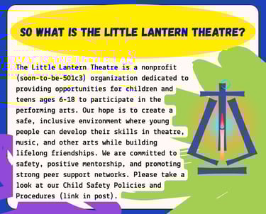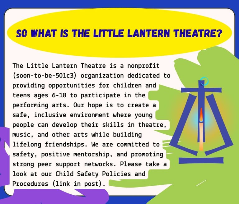 A supportive environment where children aged 6-18 can excel on stage and develop beyond it. This nurturing space is designed to foster creativity, confidence, and collaboration, allowing young performers to explore their talents and interests. By providing various workshops, performances, and mentorship programs, we encourage them to not only shine in theatrical arts but also to develop life skills that will benefit them in all areas of their lives. Through every rehearsal and performance, children learn the importance of teamwork, discipline, and self-expression, making this experience invaluable as they grow both on and off the stage.